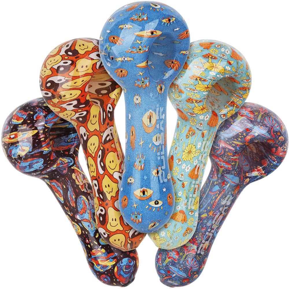Crafted from high-quality borosilicate glass, this spoon-style pipe is durable and heat-resistant, ensuring a clean and smooth draw every time you use it. The unique inside print design showcases intricate artwork from the Pulsar Design Series, making it a conversation starter among friends.